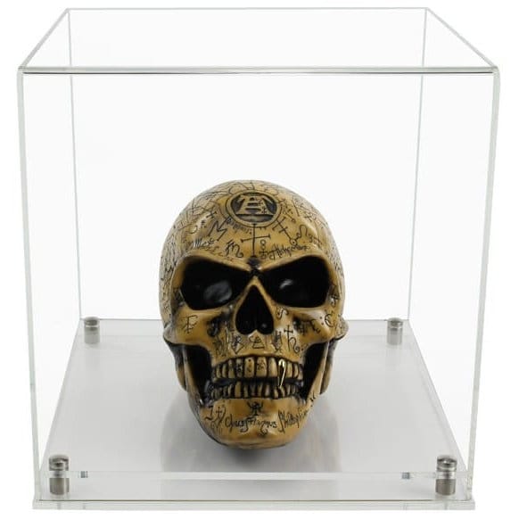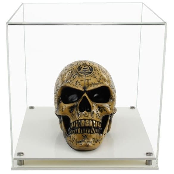 This display case has internal sizes of 250mm wide x 250mm deep x 230mm high, and external sizes of 257mm wide x 257mm deep x 260mm high.