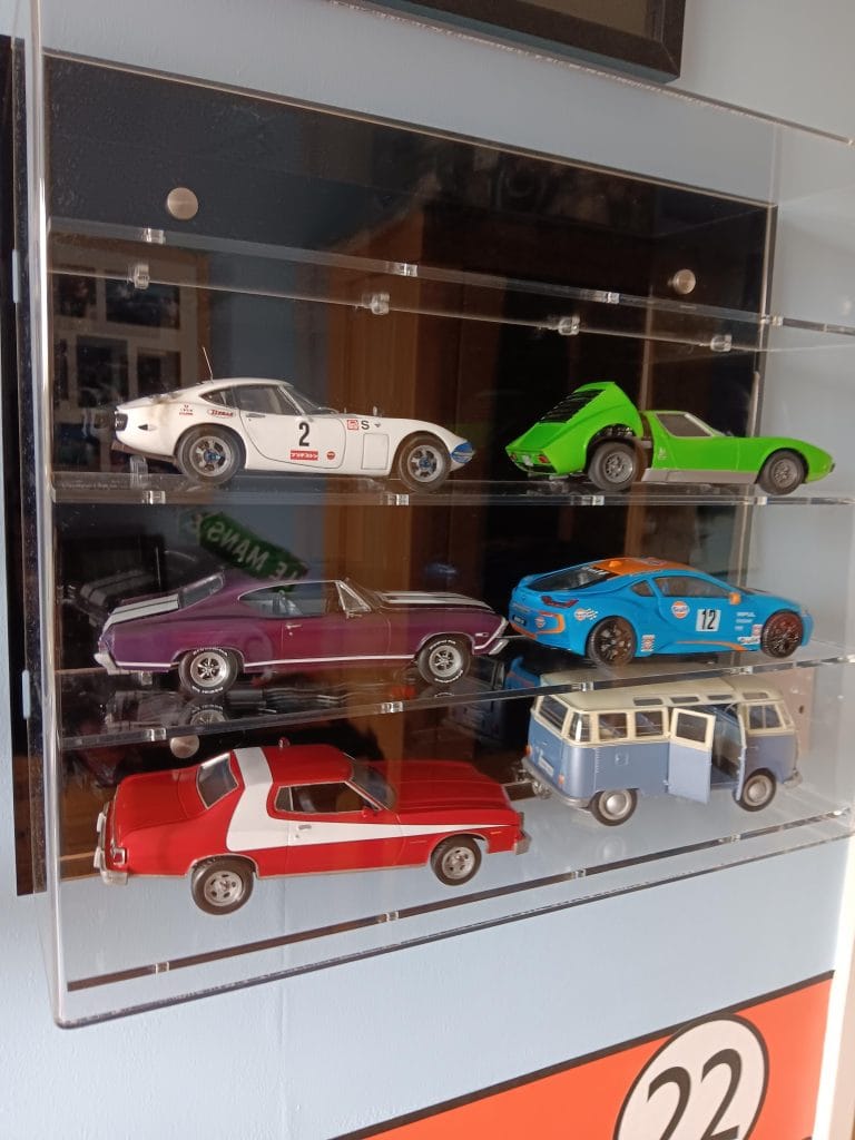 Acrylic Wall Display case – Top quality display case for my Spark 1:5 F1 Helmets. Easy to mount and looks like the cats whiskers. Definitely purchasing another when this one is full.