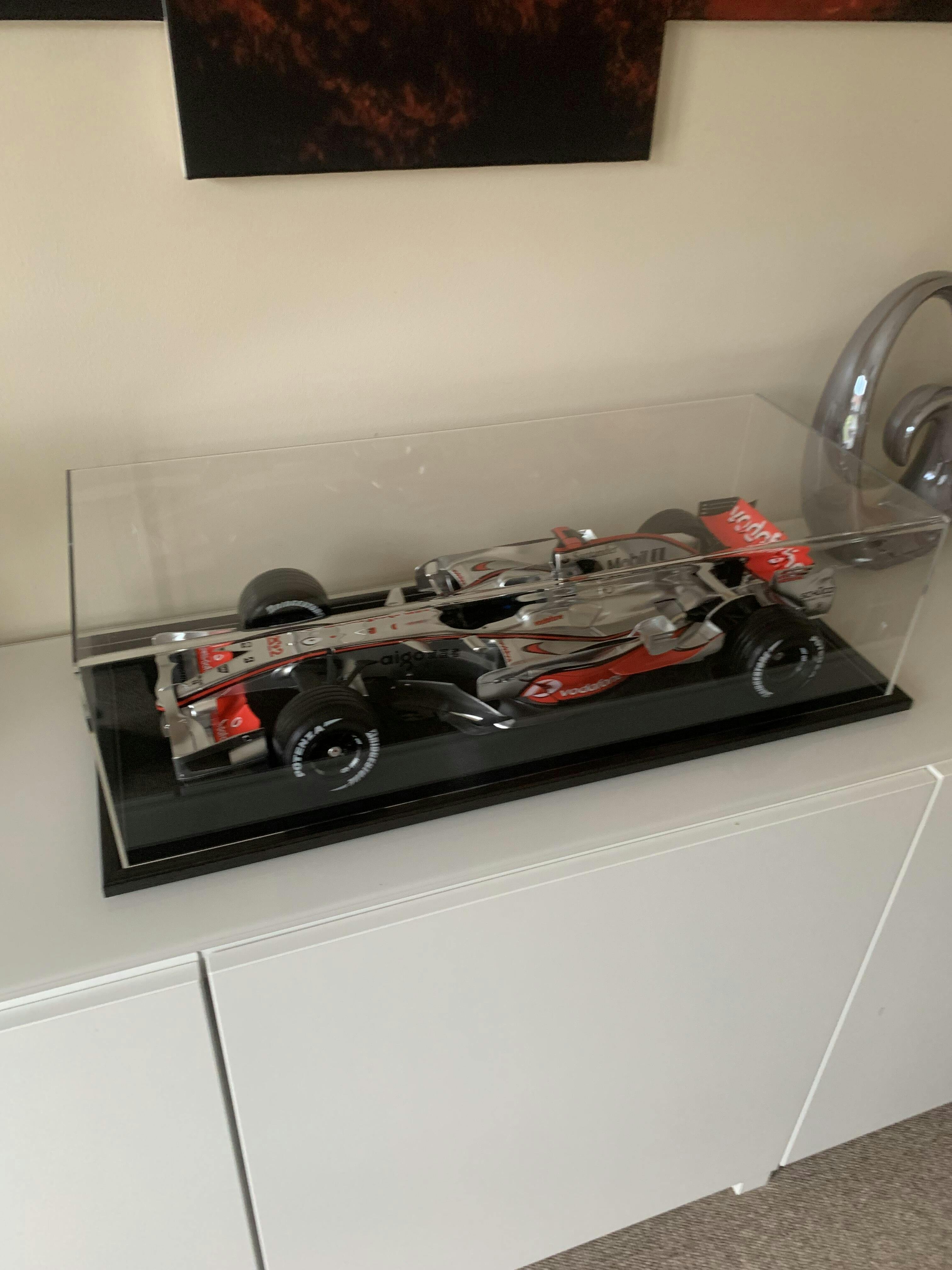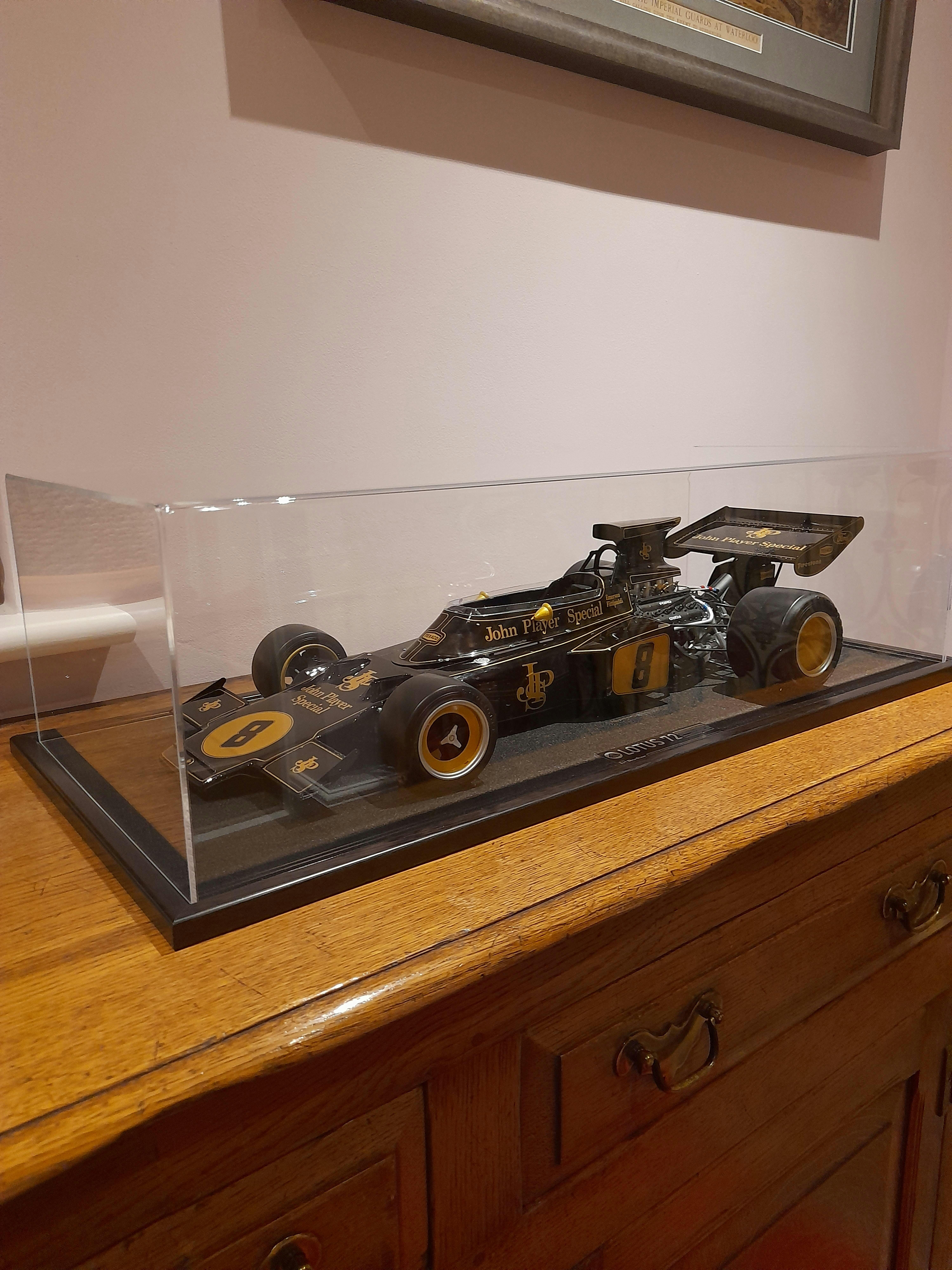 This display case has internal measurements of 650mm x 275mm x 175mm high, and has been designed to fit the 1:8 scale Mclaren F1 model by DeAgostini, it is also perfect for displaying the 1/8th Scale Model Pocher Lotus 72 as many of our customers have discovered.